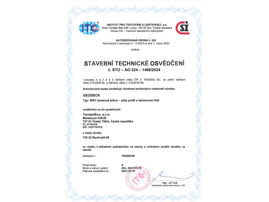 Terasové prkno v plném profilu od českého výrobce z kvalitního WPC materiálu (43% zdravotně nezávadné PVC, 17% zlepšující aditiva a max. 40% bukové dřevo) s vysokou odolností a dlouhodobou životností. Povrch prkna je potažen laminovací fólií RENOLIT GEOFOL FH, která mu dodává přirozený vzhled a jedinečnou stálobarevnost a odolnost vůči ušpinění. Vrchní vrstva obsahuje korund, který zajišťuje potřebnou protiskluznost. RENOLIT GEOFOL FH je mimořádně odolný proti poškrábání a oděru a také proti látkám, jako je kečup, červené víno nebo kuchyňský olej. Dekor zůstává dlouhodobě stabilní bez patrné změny odstínu a je vybaven technologií solárního štítu (SST), která chrání povrch před nadměrným zahříváním.