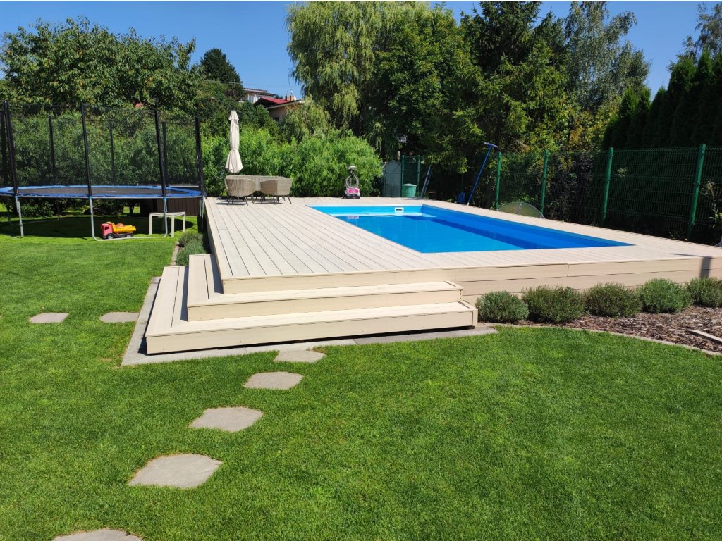 Terasové prkno v plném profilu od českého výrobce z kvalitního WPC materiálu (50% dřevo a 50% PVC) s vysokou odolností a dlouhodobou životností. Standardní délka terasového prkna je 4 000 mm, lze dodat i v délkách na míru. Prkna jsou speciálně upravovány tzv. "embossováním" - vtisknutí nepravidelných vrypů do hladkého povrchu prkna. Povrch je následně jemně zbroušen pro dokonalý vizuální i dotykový pocit dřeva.